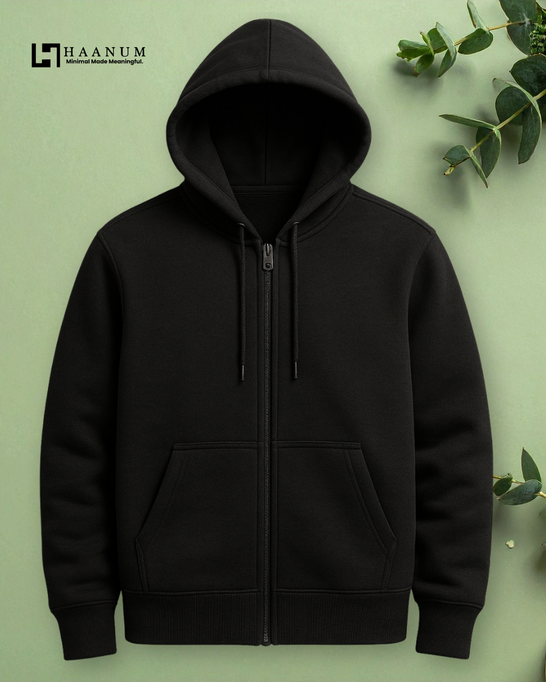 Black Zip Unisex HeavyWeight Hoodie Plain